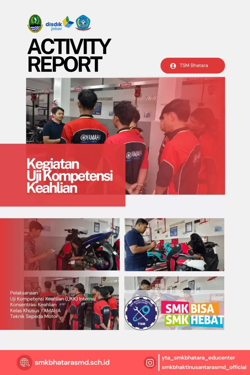 Kegiatan UKK internal ini dilaksanakan pada [tanggal kegiatan], bertempat di bengkel praktik SMK Bhakti Nusantara Sumedang. Uji kompetensi ini menjadi salah satu tahapan penting dalam proses pendidikan kejuruan, untuk mengukur sejauh mana siswa menguasai keterampilan teknik sepeda motor sesuai dengan standar industri.