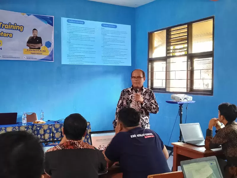 Setelah pemaparan materi, kegiatan dilanjutkan dengan sesi diskusi dan tanya jawab, di mana para peserta sangat antusias berdialog dan berbagi pengalaman terkait pembelajaran. Para guru juga berkesempatan untuk melakukan presentasi singkat mengenai rancangan pembelajaran yang telah mereka susun dengan menerapkan pendekatan deep learning.